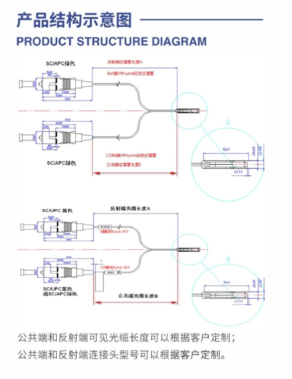 PWDM波分復用器是由濾光片、G透鏡、帶玻璃管雙芯準直器插針、金屬鋼管、 o9 Hytre非阻燃空套管、連接頭組成。